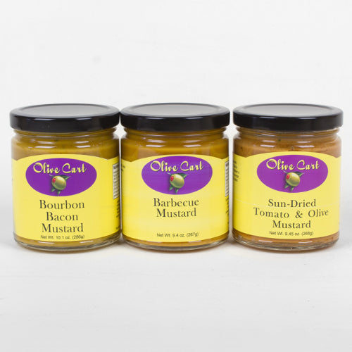 Personalize your gift to your favorite mustard lover or treat yourself. Your choice of three of our six smaller jars of gourmet mustards