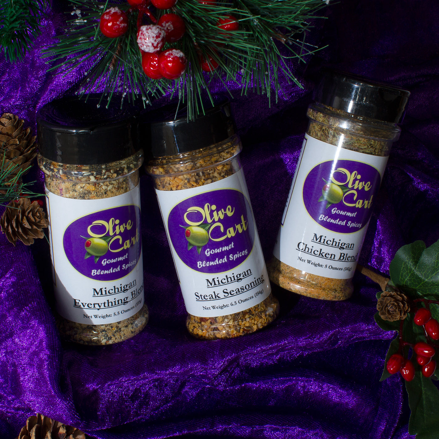 A very thoughtful Michigan Spice Blends 3-pack gift set that includes one large jar of each of our wildly popular Michigan Steak, Michigan Chicken and Michigan everything blends.