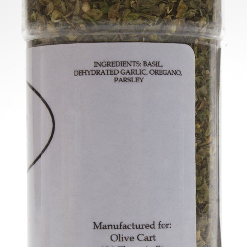 An Italian blend of basil, garlic and parsley for a true pesto flavor, so quick and easy. Combine it with our Pesto olive oil for a quick and easy pesto sauce that is great on pasta, chicken or white fish. Doest not contain salt.